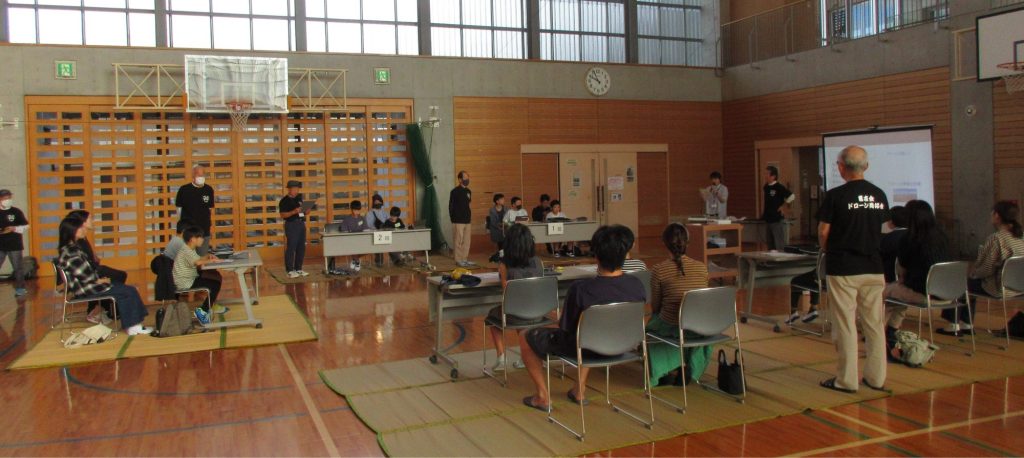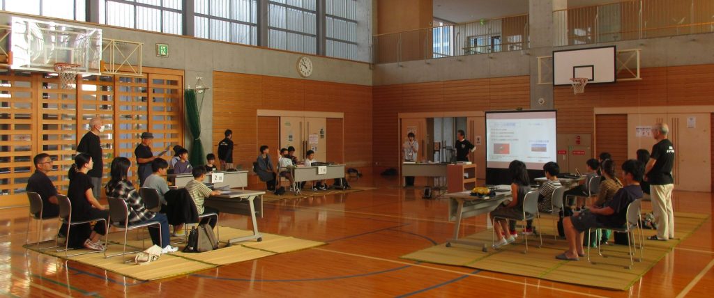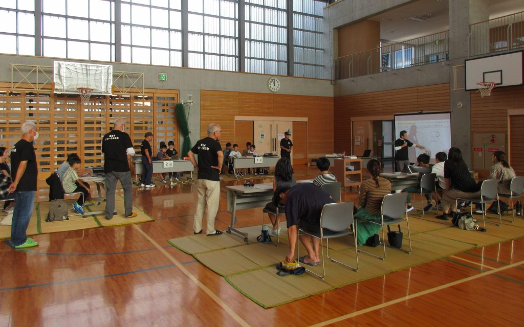 2025年10月26日(日曜日)にえーるピア久留米でドローン体験教室を開催しました。今回は、ドローン操縦体験、プログラミングドローン飛行体験に加えて、プログラミングドローン飛行のゲームを行いました。各チームに飛行ルートを計測しプログラミングの速さを競いました。保護者の方も一緒に参加し盛り上がりました。次回は、えーるピア久留米の体育館工事のため、4月か5月に行います。